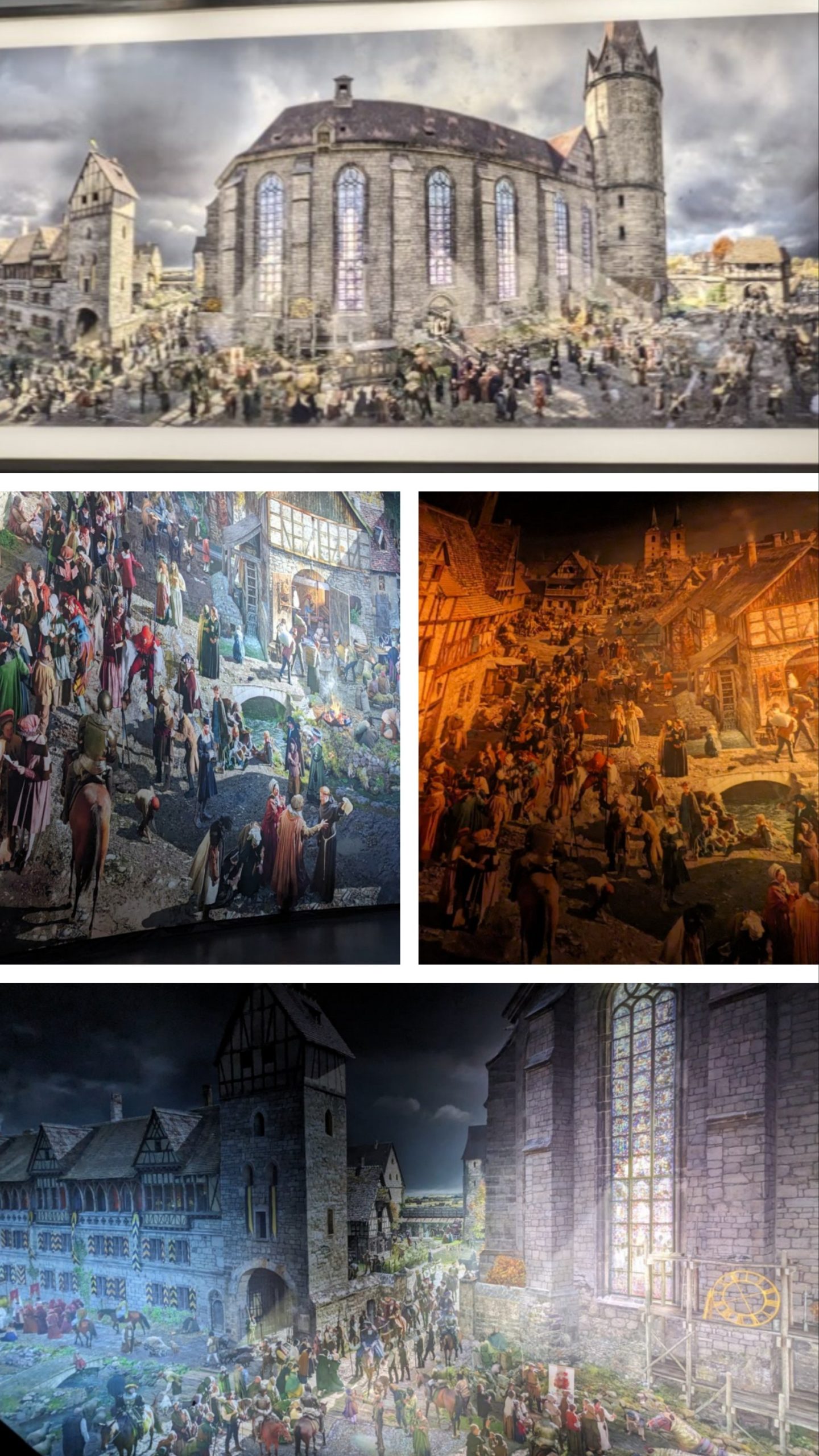 „Seit den großen Feierlichkeiten zum 500-jährigen Jubiläum der Reformation wird in einer 360°-Panorama-Ausstellung von Yadegar Asisi die Lutherstadt zur Zeit Philipp Melanchthons, der beiden Cranachs, Katharina von Boras, Martin Luthers und Justus Jonas lebendig und Geschichte erlebbar. Eingebettet in einen Tag-Nacht-Rhythmus und umgeben von einer eindrucksvollen Geräuschkulisse, werden Sie Zeuge, wie Martin Luther eine Bewegung ins Werk setzt, deren Neuerungen und Ideen unser heutiges Leben erst ermöglicht haben.“